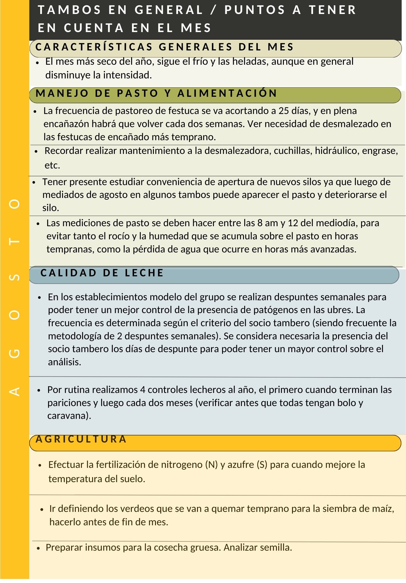 La agenda del tambo: agosto